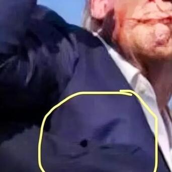 川普不只挨了一枪,还有一枪打在了他的腋窝附近,衣服上被穿了一个大洞,但却没有留下血迹,显然他穿了防弹衣,是防弹衣替他挡了这一枪,而被打中后,川普居然没有作出反应,这显然是不合常理的,虽然他已经78岁了,但也不至于反应如此迟钝,因此,当时川普很可能在瞬间遭到了凶手的多发点射,以至于被击中右耳才反应过来。